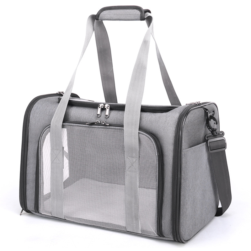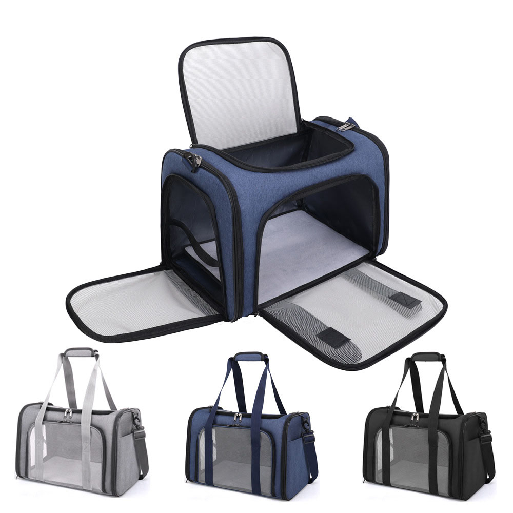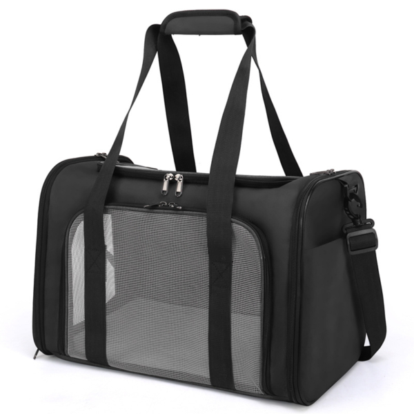 Incluye bolsillos prácticos para llevar los accesorios esenciales de tu mascota, así como una alfombra interna que proporciona un espacio acogedor. Su diseño permite su uso en cabinas de avión, facilitando los viajes en avión sin complicaciones.
